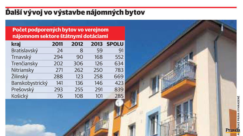 Podľa neho to takto funguje v susednom Rakúsku a ak by na výstavbu pristúpila aj naša krajina, ročne by pribudlo 5– až 10-tisíc nájomných bytov, do roku 2022 by sa ich počet dokonca zdvihol na 100-tisíc. Teraz má štát k dispozícii niečo vyše 8-tisíc nájomných bytov. Tie si postavili samosprávy, no keďže musia rok čo rok šetriť a dávať si pozor na zadlženosť, niektoré sa do výstavby nepustili od roku 1999.